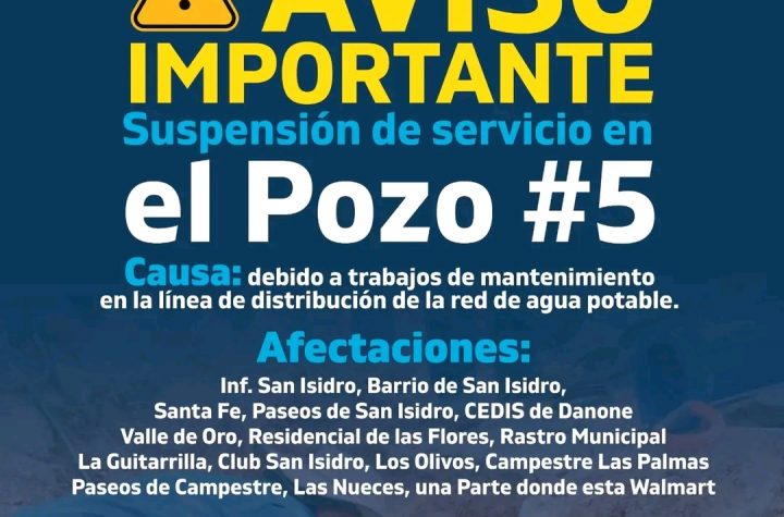 Voces SJR Suspenden servicio de agua en varias colonias por trabajos en el Pozo #5 5 días atrás Voces SJR