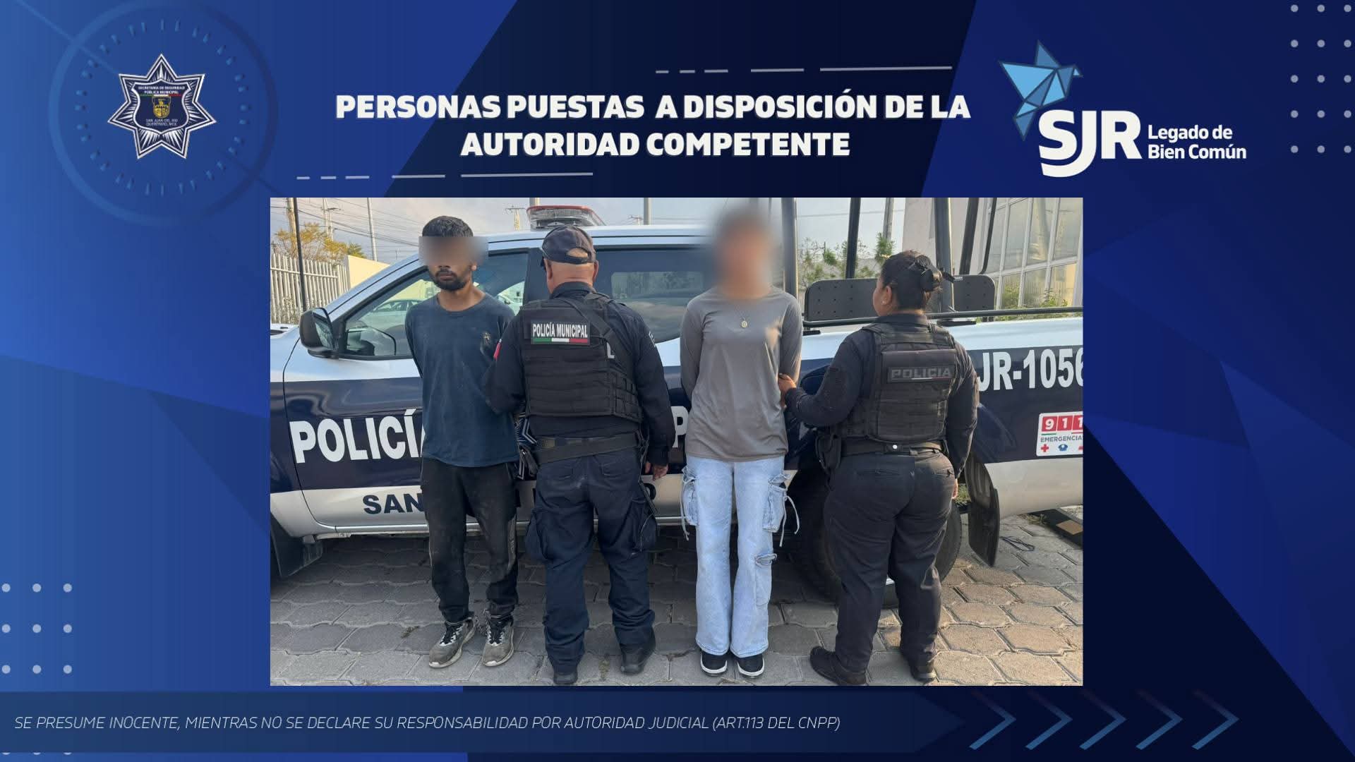 Detienen a dos personas por presunto robo en inmueble asegurado en Granjas Banthí