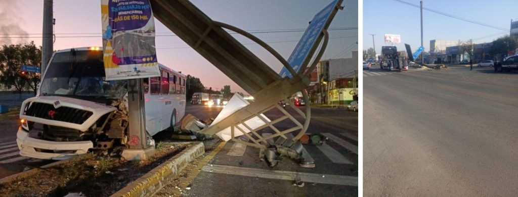 Durante la mañana de este día se registró un accidente vial sobre Paseo Central, a la altura del semáforo de Río San Juan, en el que se vio involucrado un transporte de pasajeros de la ruta Cazadero, en donde derribó un poste de señalización.