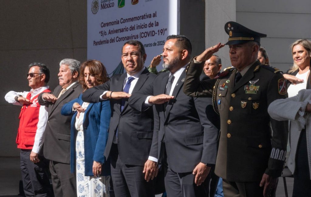 El presidente municipal de San Juan del Río, Roberto Cabrera Valencia, asistió a la Ceremonia Conmemorativa del 5º Aniversario del Inicio de la Pandemia del Coronavirus COVID 19, donde se ofreció un minuto de silencio en honor a quienes perdieron la vida a consecuencia de esta enfermedad y en la que se entregaron reconocimientos al personal de salud y de atención de emergencias de los tres niveles de gobierno.
