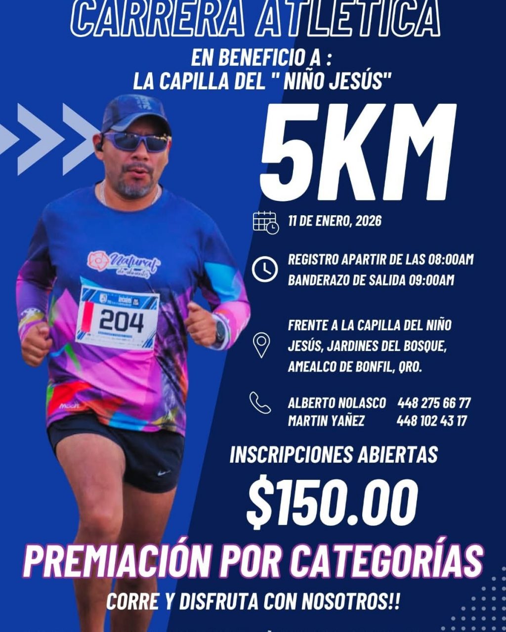 Amealco de Bonfil, Qro.– Con el objetivo de apoyar el mantenimiento y mejora de la Capilla del Niño Jesús, ubicada en la comunidad Jardines del Bosque, se llevará a cabo una carrera atlética de 5 kilómetros el próximo 11 de enero de 2026.
