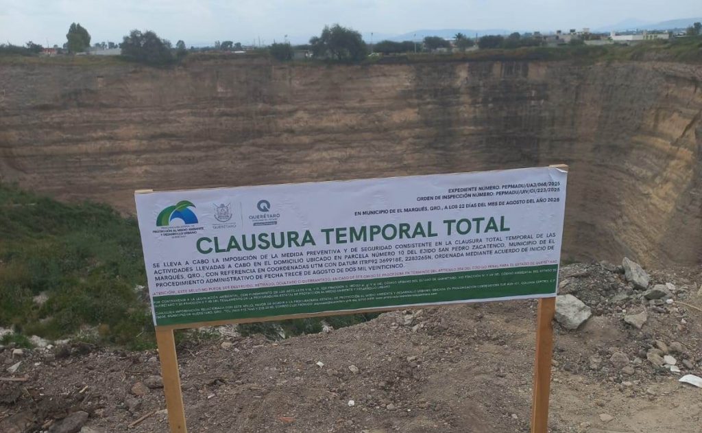 En atención a una denuncia, personal de la Procuraduría Estatal de Protección al Medio Ambiente y Desarrollo Urbano (PEPMADU) realizó una visita de inspección a un banco de tiro ubicado en la parcela número 10 del ejido San Pedro Zacatenco, municipio de El Marqués, resultando en la clausura del lugar.