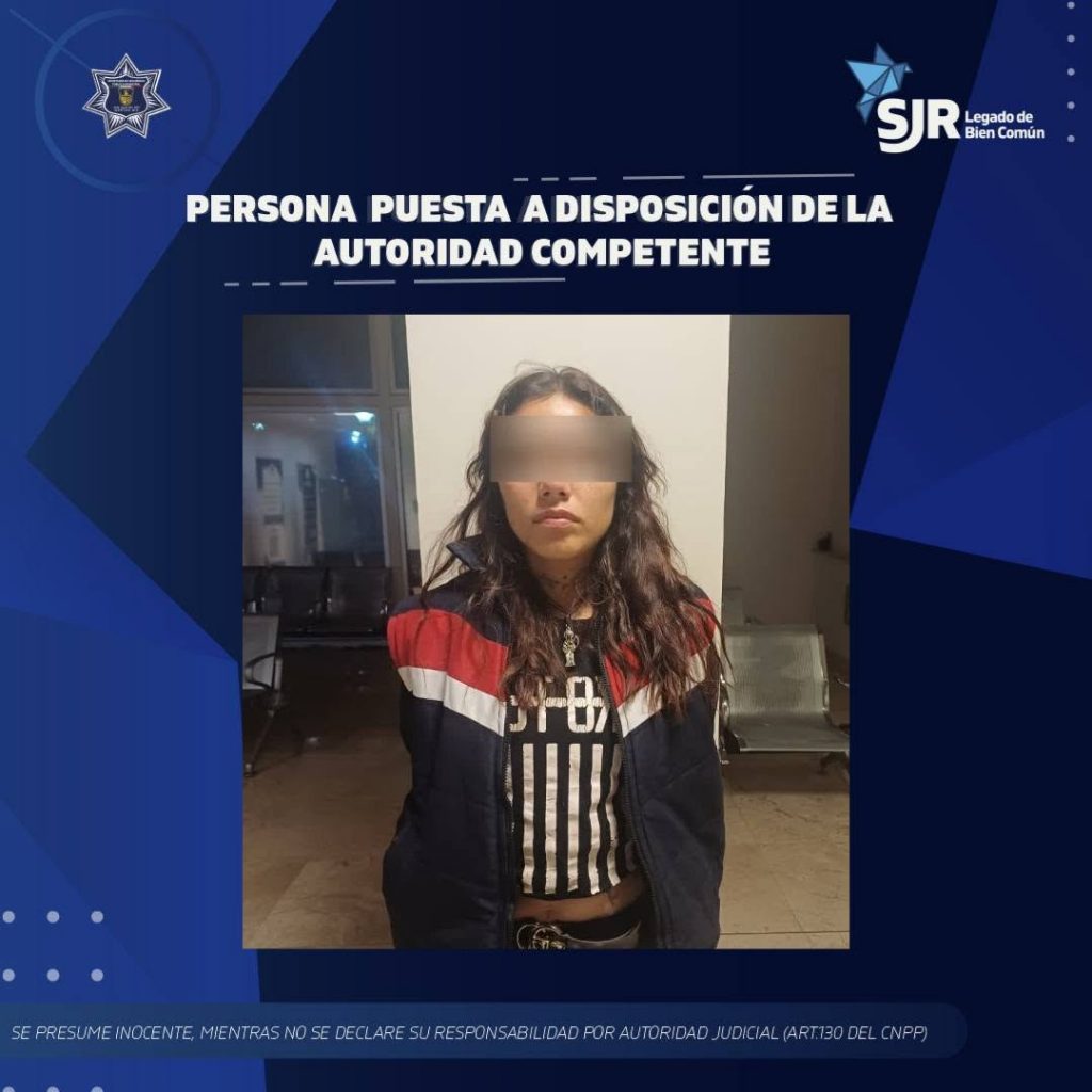 La detenida fue puesta a disposición de la Fiscalía General de la demarcación por el delito de lesiones dolosas. La SSPMSJR refrenda su compromiso con la seguridad y el bienestar de la ciudadanía, y continuará trabajando para garantizar la tranquilidad y la paz en la ciudad.