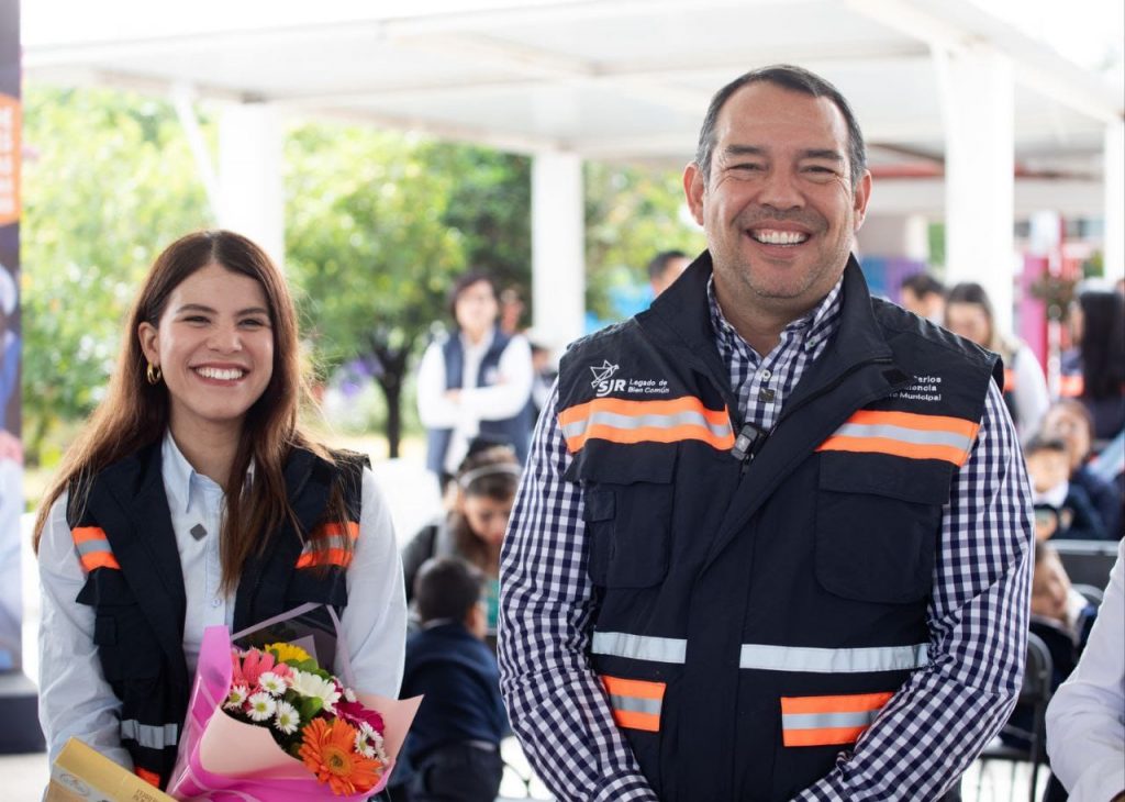 • Acompañado de la presidenta del Sistema Municipal DIF, Gina Sánchez Barrios, el alcalde sanjuanense entregó una techumbre en el jardín de niños El Pípila, ubicado en el Barrio de La Concepción.