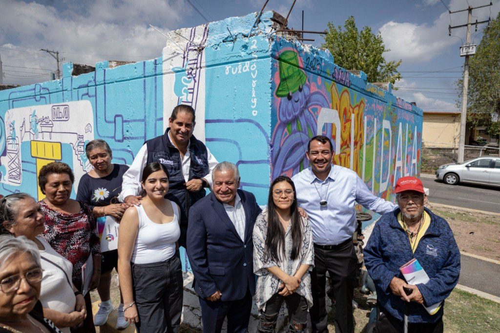 Por su parte, la artista Alondra Corona, conocida como Ruido, autora del mural, explicó que la obra se divide en tres secciones principales, que incluye una intervención colectiva con la palabra Cuídala, resultado de la participación comunitaria, además de murales laterales que simbolizan el uso cotidiano del agua, el trabajo en equipo que hace posible su suministro y el reconocimiento al esfuerzo diario de los trabajadores de JAPAM.