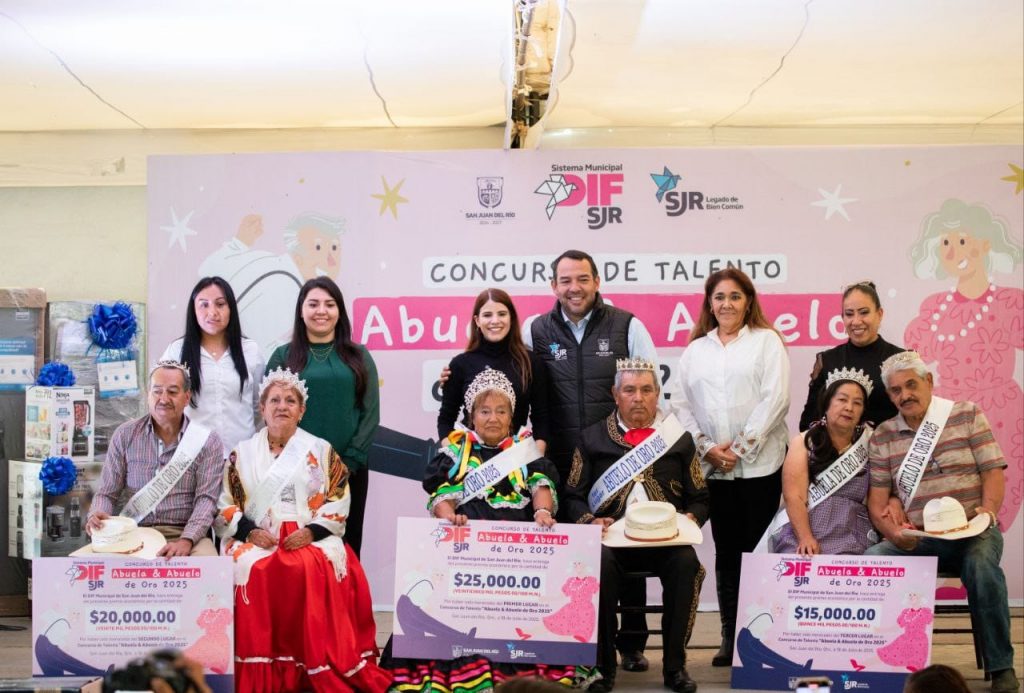 En un ambiente familiar y de celebración, se llevó a cabo el Certamen Abuela y Abuelo de Oro 2025, evento que fue encabezado por la presidenta del Sistema Municipal para el Desarrollo Integral de la Familia (DIF) de San Juan del Río, Gina Sánchez Barrios, y el presidente municipal sanjuanense, Roberto Cabrera Valencia, a través del cual se crea comunidad y se fortalece el Legado de Bien Común.