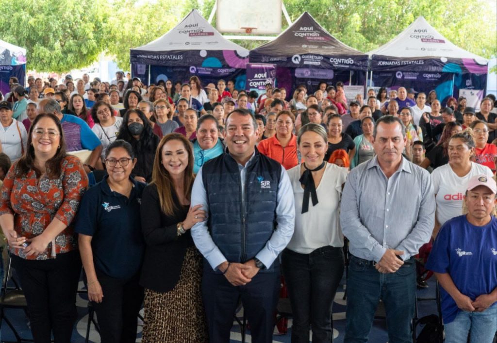 Con la finalidad de acercar los servicios, acciones y programas gubernamentales a favor de las mujeres, se llevó a cabo la Jornada “Aquí Contigo Mujeres” en las instalaciones de la Unidad Deportiva Maquío, en el municipio de San Juan del Río, evento que encabezaron las titulares de las Secretarías de la Mujer estatal y municipal, Sonia Rocha Acosta y Judith Ortiz Monroy, respectivamente, y el presidente municipal de San Juan del Río, Roberto Cabrera Valencia.
