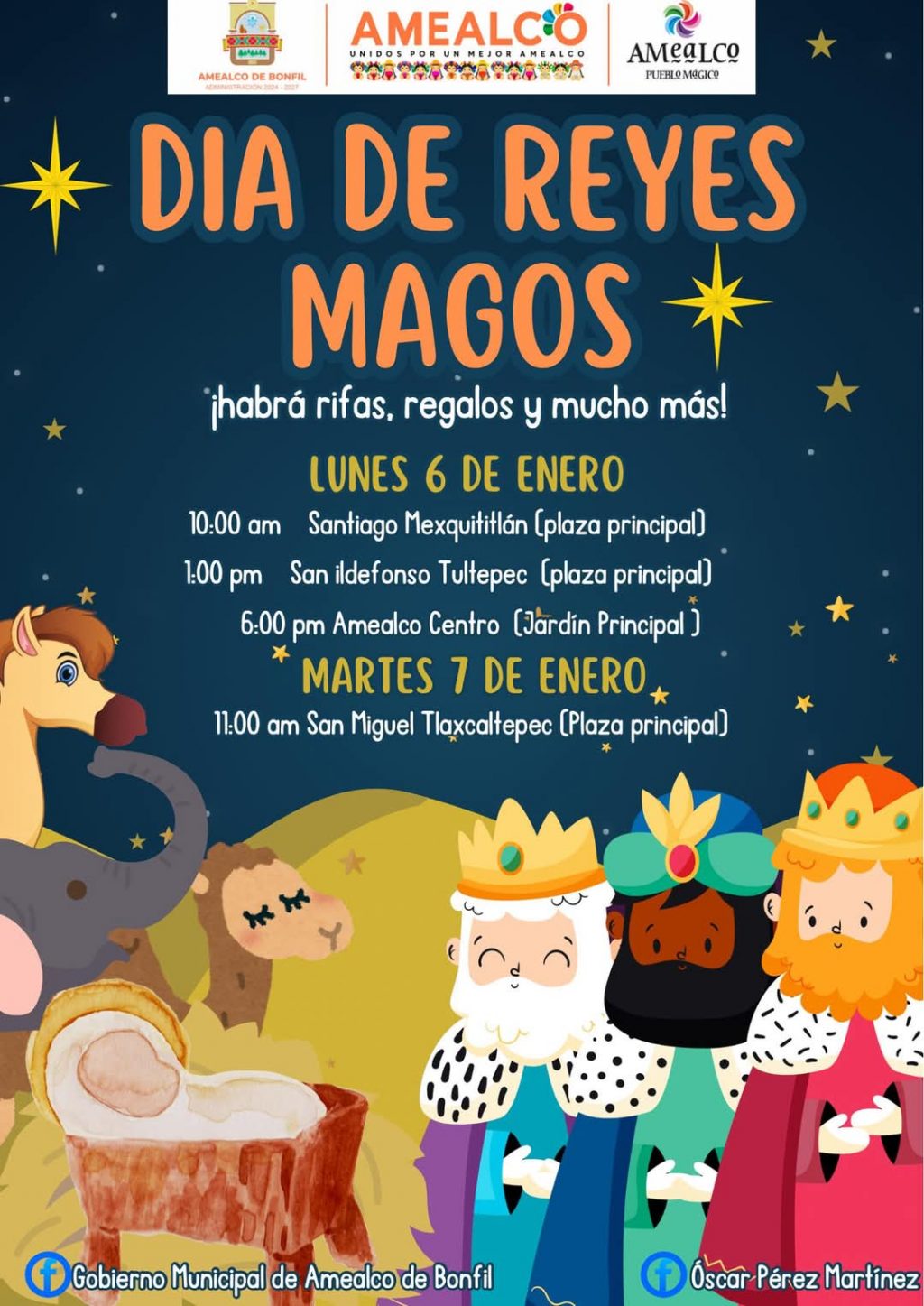 Amealco de Bonfil, Qro.- Conservando una de las tradiciones más arraigadas como es el Día de Reyes, las autoridades municipales amealcenses llevarán regalos, rifas y mucha alegría a los niños y niñas de las comunidades de Santiago Mexquititlán, San Ildefonso Tultepec, San Miguel Tlaxcaltepec y en la cabecera municipal los días 6 y 7 de enero con motivo del Día de Reyes Magos.