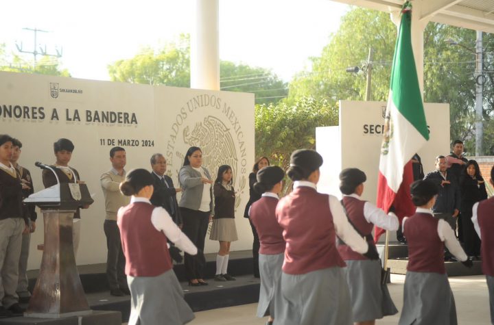 San Juan del Río Voces SJR Autoridades municipales realizan honores a la Bandera en la Escuela Secundaria Técnica Luis Romero Soto 2 años atrás Voces SJR