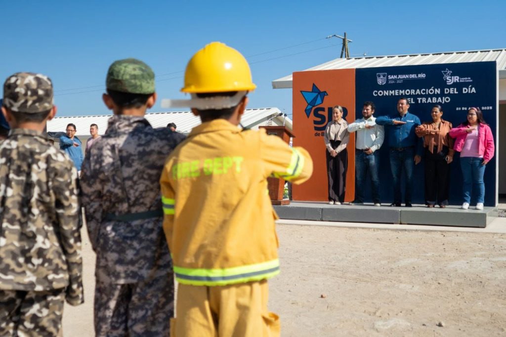 - El presidente municipal de San Juan del Río, Roberto Cabrera Valencia, encabezó la ceremonia del Día del Trabajo en la primaria “Oscar Peralta Navarrete”.