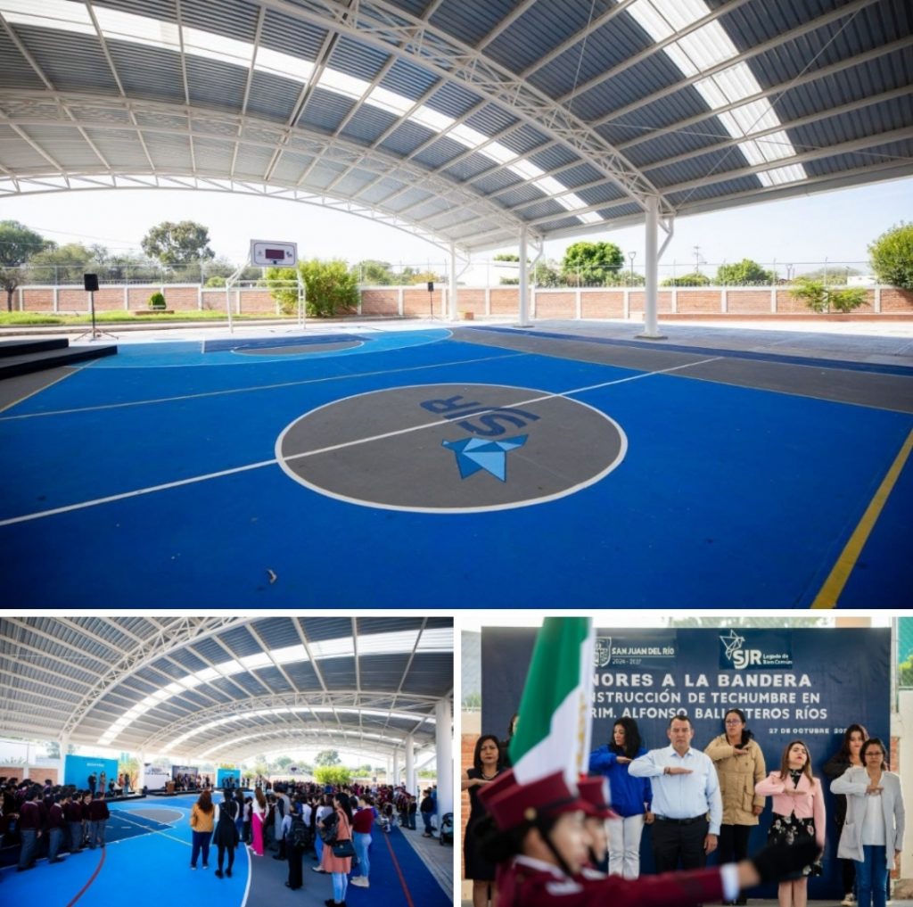 Con una inversión superior a 2 millones 700 mil pesos, el presidente municipal de San Juan del Río, Roberto Cabrera Valencia, entregó la construcción de una techumbre en la escuela primaria Alfonso Ballesteros Ríos, ubicada en la colonia La Floresta, al Oriente de la ciudad; con lo cual, suman más de 71 instituciones educativas en las que el Gobierno Municipal ha llevado a cabo obras en beneficio de su comunidad escolar.