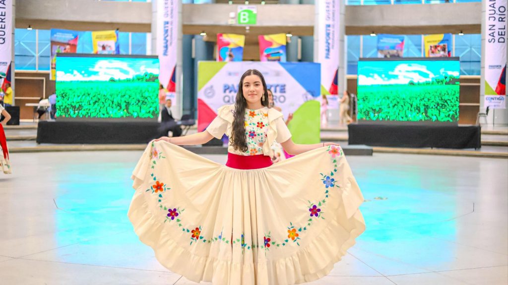 En el marco del programa Pasaporte Querétaro, realizado en el Centro Cultural y Educativo Manuel Gómez Morín, el municipio de San Juan del Río presentó la riqueza cultural que distingue a sus comunidades a través de la participación de las jóvenes representantes del certamen Flor más Bella del Campo, símbolo vivo de identidad y orgullo rural.