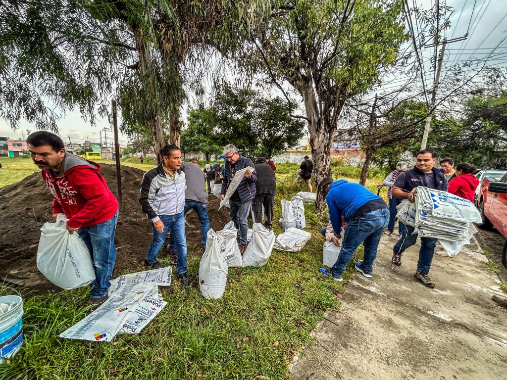 La Dirección Municipal de Protección Civil de San Juan del Río, en conjunto con la ciudadanía, realizó una jornada comunitaria de llenado de 650 costales de arena en la colonia Manantiales, como parte de las acciones preventivas para mitigar riesgos durante la presente temporada de lluvias.